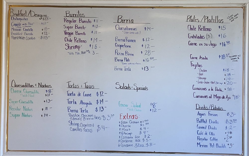 El Sabor De Guadalajara Menu